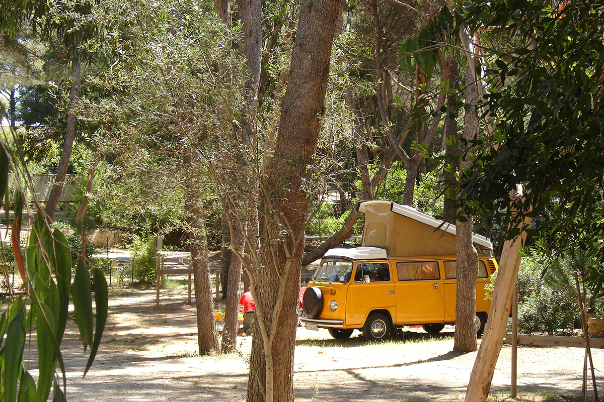 Located near the port of La Madrague, Camping Olbia has 100 pitches in the shade of pine or eucalyptus trees. There is a minimarket, bar and restaurant on site. No entertainment, just the song of cicadas lulls your days. Come spend a holiday in harmony with nature.
